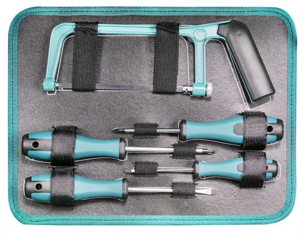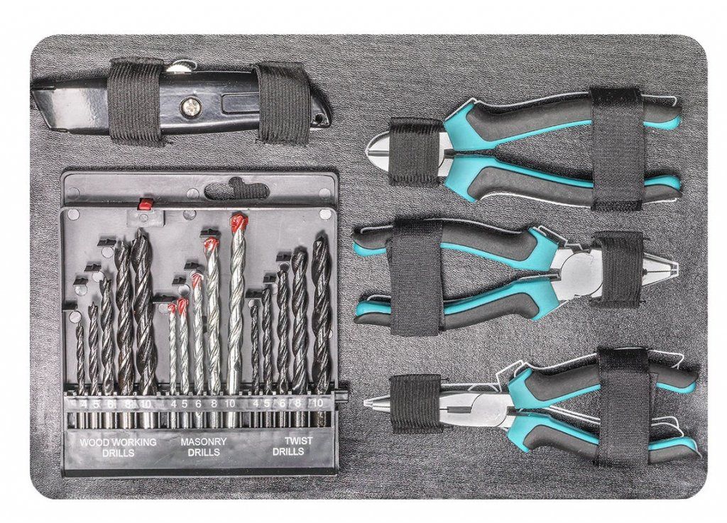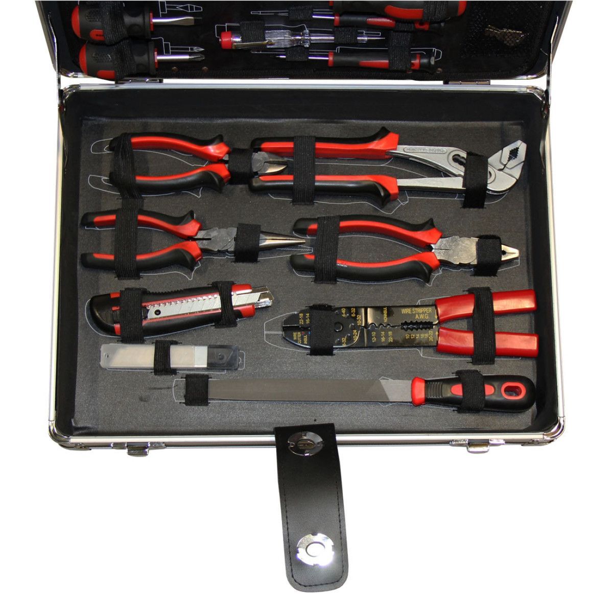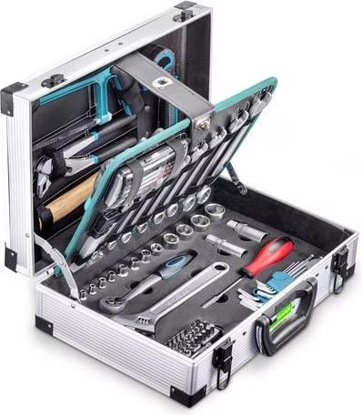 Robuste und stabile Werkzeugtasche, gefüllt mit 100 Qualitätswerkzeugen.Ideal für Montage- und Servicearbeiten.