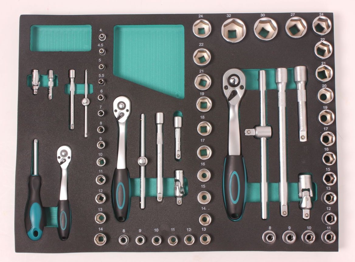 Bestückt mit diversen ¼“, 3/8B und ½“ Stecknüssen, Umschaltknarren, Verlängerungen uvm.